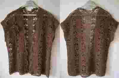 Witam na mojej aukcji i mam do sprzedania , nową oryginalną kamizelę, rozpinaną z wstawką dekoracyjną - wykonaną szydełkowym różnorodnym ażurem. Włóczka średniej grubości, dekoracyjna bukla, bawełna, mięciutka lekka, melanżowa w rudawo, szaro, brązowym kolorze. Przód bezrękawnika wykończony ozdobną koronką . Kamizelę można nosić luźno lub przewiązać paskiem,wiązaniem - zastosować ozdobną klamrę, guziki - zależy od własnego pomysłu i fantazji. Lekko spadające ramiona, luźna pacha - kamizela modna i wygodna. Można zamawiać inne kolory, fasony z wybranymi wzorami i wymiarami. Dodatkiem dekoracyjnym jest stylizowana aplikacja kwiatowa. Dostępny do sprzedaży jest obecnie jeden egzemplarz. Zachęcam do nabycia kreacji i zapraszam na inne moje aukcje.