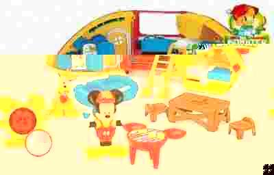 W prezentowym opakowaniu znajdziemy duży samochód - kamper o wymiarach 26 x 12,5 x 15 cmz licznymi atrakcjami. Maluszek może otwierać boczne drzwiczki odsłaniając wnętrze wozu, może również rozłożyć pojazd na dwie części, dzięki czemu odsłoni cały środek ułatwiając sobie zabawę. A tam znajdziemy mnóstwo gadżetów, w tym 2 łóżka czy otwieraną lodówkę. Na postoju Miki i Pluto też nie będą się nudzić - zielona markiza jest wysuwana, mogą rozstawić stolik z 2 krzesłami, grilla, a nawet popływać 13-sto centymetrowym pontonem (przewiozą go na dachu wozu). Z pozostałych gadżetów warto wspomnieć o Cośku, lunecie i drabince.
