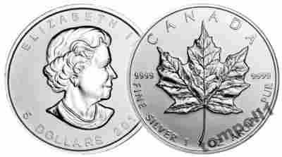 KANADA 2012 MAPLE LEAF $5CAD 1 OZ-UNCJA SREBRA