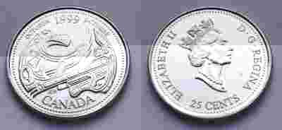 KANADA 25 CENTS 1999 PAŹDZIERNIK MENNICZA