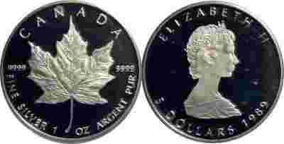 KANADA 5 $ 1989 SREBRO 1 UNCJA LUSTRZANKA