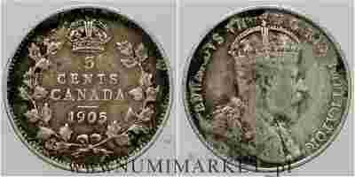 Kanada, 5 centów, 1905 rok, srebro, #1315