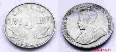 KANADA 5 CENTS 1922 GEORGIVS V - RZADSZA