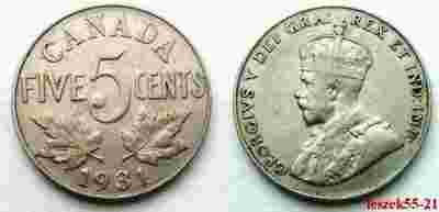 KANADA 5 CENTS 1931 GEORGIVS V - RZADSZA