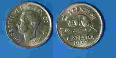 Kanada (Anglia) 5 Cents 1937 rok od 1zł BCM