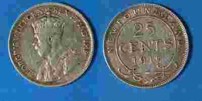 Kanada (Anglia) New Foundland Srebro 25 Cents 1919