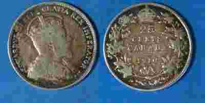 Kanada (Anglia) Srebro 25 Cent 1910 rok od 1zł BCM