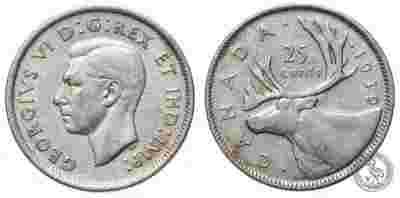 Kanada - moneta - 25 Centów 1939 - Srebro