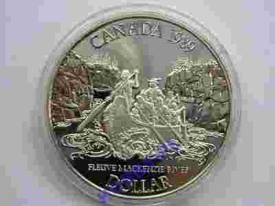 Kanada One dollar 1989 - Rzeka MacKenzie +Cert. Ag