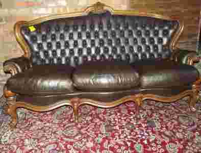 Kanapa +1 fotel -antyk -skóra pikowana