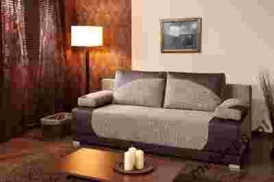 Kanapa jest nowością na rynku polskim, modne połączenie tkaniny z ekoskórą,