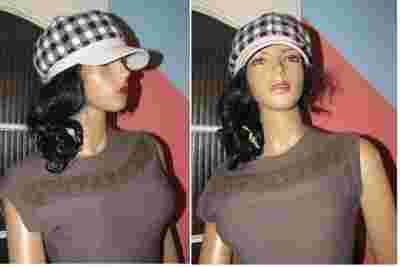 Śliczny kapelusik kaszkiet w biało-czarno-szary motyw.