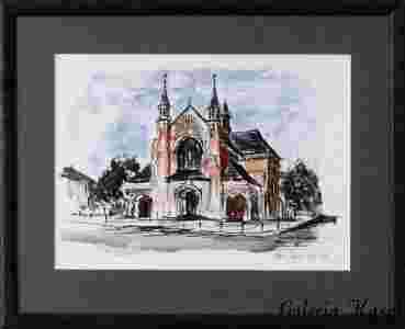 KAPLICA SZKOLNA oprawiona akwarela, obraz+rama