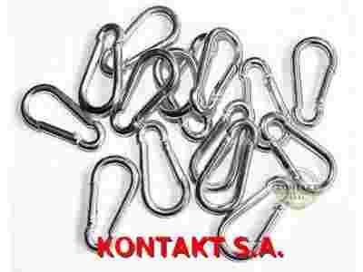 Hak karabinkowy (karabińczyk) wykonany ze stali pokrytej galwanicznie powłoką cynkową. Haki te stosowane jako element do łączenia linek elastycznych ze sobą lub innym osprzętem. Praktyczne zastosowanie w motoryzacji, turystyce, żeglarstwie, sportach wspinaczkowych oraz wszędzie tam, gdzie wymagane jest szybkie i łatwe do zdemontowania połączenie ze sobą różnego rodzaju elementów. Powłoka cynkowa chroni stal przez wiele lat, przedłuża jej trwałość i nie wymaga konserwacji.