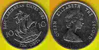 Karaiby 10 Cents 1987 r.