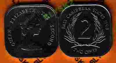 Karaiby Wsch./KM-11/ 2 CENTS 1998 r.Kwadratowa