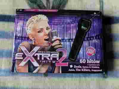 Witam, do sprzedania mam Karaoke Extra Hity 2 . W zestawie mikrofon. Produkt działa również w odtwarzaczach DVD. Polecam. Cechy gry: Ocena śpiewu na 3 różnych poziomach trudności: od nowicjusza do gwiazdy estrady Aż 3 zupełnie odmienne tryby rozgrywki: kariera, szybka gra lub impreza Ponad 60 najnowszych hitów ze światowych list przebojów oraz wiecznie żywe kawałki Pełen tryb kariery: od domowego śpiewaka, aż po mega gwiazdę estradową 60 hitów wykonywanych między innymi przez: Adam Lambert, Adele, Amy Winehouse, Andrzej Piaseczny, Ania Wyszkoni, Bajm, Beyoncé, Bracia, Budka Suflera, Carly Rae Jepsen, Cheryl Cole, Coma , David Guetta, De Mono, Doda, Dżem, Edyta Górniak, Elektryczne gitary, Enej, Ewa Farna, Ewelina Lisowska, Feel, Golden Life, Gotye & Kimbra, Happysad, Hey, Ich Troje, IRA, Jessie Ware, Jula, Kamil Bednarek, Kasia Klich, Kasia Kowalska, Katy Perry, Kobranocka, Kombi , Kukiz & Borysewicz , Lady Gaga, Lady Pank, Lane Del Rey, Lombard, Manchester, Monika Brodka, Myslovitz, Nickelback, O.N.A., Rafał Brzozowski, Rihanna, Shakira & Freshlyground, Snow Patrol, Strachy na Lachy, T.Love , The Killers, Varius Manx, Zakopower