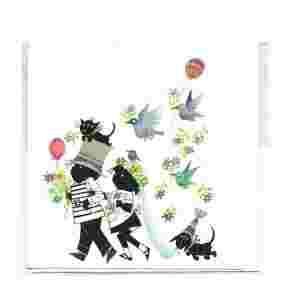 Dzieci w ilustracji i grafice - ptaki i kwiaty - piesek i kot ...
