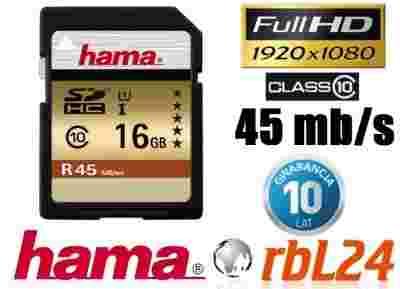 Karta pamięci HAMA 16GB SDHC CLASS10 UHS-I 45MB/s!