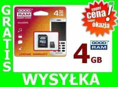 • Fabrycznie nowa, wysokiej jakości Karta Pamięci GOODRAM microSD 4GB + Adapter SD
