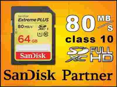 SanDisk Extreme® SDXC™ 64GB ●● Extreme ● 64GB Class 10 ● UHS 1 ● 80 MB/s