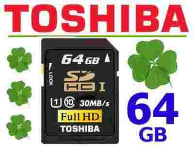 Nowa, markowa karta flash firmy TOSHIBA 64GB class 10 UHS-I współpracuje z aparatami cyfrowymi, telefonami komórkowymi, nawigacjami, mp3 player'ami oraz innymi urządzeniami z obsługą SDHC.
