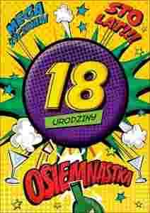 Kartki 18 urodziny z przypinką MEGA