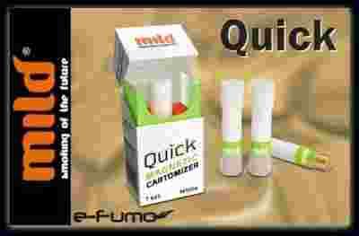 Biały kartomizer z kolorową obwódką odpowiadającą wybranemu smakowi, to wkład do uzupełniania e-papierosa MILD Quick. Zastosowana magnetyczna końcówka kartomizera pozwala jeszcze szybciej przygotować e-papierosa do użytku. Wystarczy tylko przybliżyć do siebie obie części urządzenia i czekać na charakterystyczne „kliknięcie”.