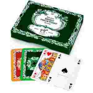 Klasyczne, bardzo popularne, najwyższej jakości karty do gry austriackiej firmy Piatnik. Idealne do brydża, pokera, remika oraz innych gier. Jakość i tradycja w doskonałej cenie! Wiedeńska fabryka Ferd. Piatnik & Sohne istnieje od 1824 roku. Początkowo był to niewielki zakład, gdzie karty malowano ręcznie. Pod koniec XIX wieku został przekształcony z tradycyjnej manufaktury w przedsiębiorstwo przemysłowe. Od roku 1950 oferta Piatnika jest stale wzbogacana – obecnie zawiera również bardzo wiele puzzli i gier. Jednak najbardziej znana grupa produktów tego producenta to oczywiście karty do gry. Do produkcji kart firmy Piatnik używany jest surowiec najwyższej jakości, a jednym ze znaków rozpoznawczych firmy jest różnorodność wzorów kart i puzzli. Dzięki temu Piatnik stał się jednym z największych i najbardziej cenionych producentów kart do gry. Ta długa tradycja i nieustanne starania o wysoką jakość produkcji spowodowały, że nazwa Piatnik jest obecnie znana na całym świecie, a w Polsce jest wręcz synonimem kart do gry.