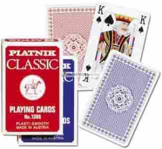 Klasyczne, bardzo popularne, najwyższej jakości karty do gry austriackiej firmy Piatnik. Idealne do brydża, pokera, remika oraz innych gier. Jakość i tradycja w doskonałej cenie!