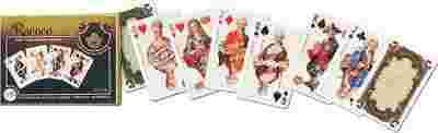 Na awersach XVIII-wieczni królowie i cesarze europejscy. W złoconym pudełku 2 talie, składające się z 55 plastikowanych kart o rozmiarach 58 x 89 i gramaturze 310.