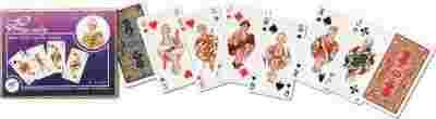 Najwyższej jakości karty renomowanej firmy Ferd. Piatnik & Sohne. Karty nieco węższe niż standardowe, bardzo eleganckie i delikatne. Nazwa to nie przypadek - idealne dla Pań. W złoconym pudełku 2 talie, składające się z 55 plastikowanych kart o gramaturze 310. Wyroby wiedeńskiej fabryki Ferd. Piatnik & Sohne od 1824 roku urzekają bogactwem wzorów i perfekcją wykonania. Jakość i tradycja!