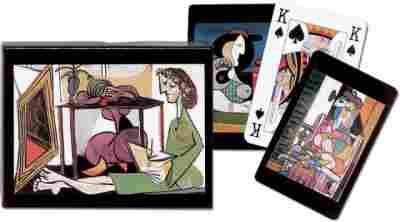 Najwyższej jakości karty do gry renomowanej firmy Ferd. Piatnik & Sohne. W komplecie 2 talie w eleganckim czarnym pudełku. Na rewersach (koszulkach) i na pudełku obrazy Pablo Picasso. Talie składają się z 55 plastikowanych kart o wymiarach 58 x 89 mm i gramaturze 310. Idealne zarówno do brydża, pokera, remika jak i innych gier. Wyroby wiedeńskiej fabryki Ferd. Piatnik & Sohne od 1824 roku urzekają bogactwem wzorów i perfekcją wykonania. Jakość i tradycja!
