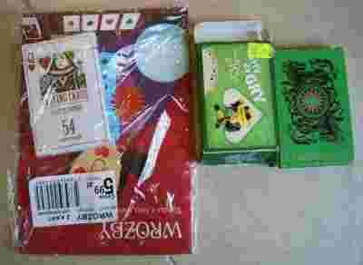 trzy talie, jedna oryginalnie zapakowana, powinny być kompletne, co do jednej talii mogę mieć wątpliwości
