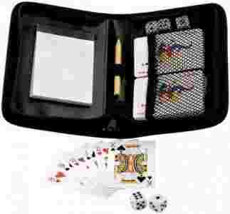 Karty do gry w etui z kośćmi i bloczkiem