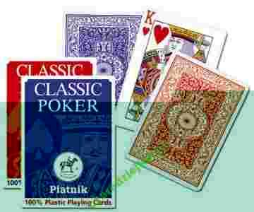 Klasyczne, bardzo popularne, najwyższej jakości karty do gry austriackiej firmy Piatnik. Idealne do brydża, pokera, remika oraz innych gier. Jakość i tradycja w doskonałej cenie!