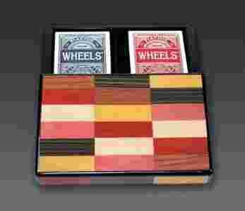 Karty Wheels PIATNIK kolorowe drewniane pudelko