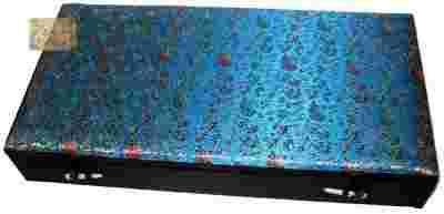 piękny głęboki odcień, lekki połysk, przepiękny turkusowy kolor, kolorowo-złoty ornament na całym wierzchu pudełka