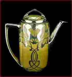 Uchwyty i wylew dzbana w całości okute srebrem. Porcelana i srebrna koronka w stanie idealnym.