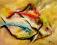 Oferuję Państwu obraz wykonany w technice własnej o formacie 50x40cm zatytułowany „Kolorowa ryba” Obraz namalowany na bawełnianym płótnie naciągniętym na sosnowy blejtram przy użyciu wysokiej jakości farb, werniksowany i sygnowany. Boki są zamalowane…