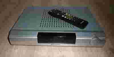 Przedmiotem aukcji jest cyfrowy tuner satelitarny Kathrein UFS 910si (srebrny) z oryginalnym pilotem