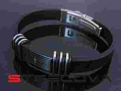 KAUCZUKOWA BRANSOLETA Z MODLITWĄ STAL316L #BA083