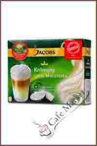 Jacobs Kronung Latte Macchiatoto kawa o delikatnym,kremowym i mlecznym smaku.Po zaparzeniu na powierzchni unosi się korona z lekkiej kremowej pianki.Kawa składa sie z saszetek topping- (jest to mleczko w proszku) i saszetek z kawą.