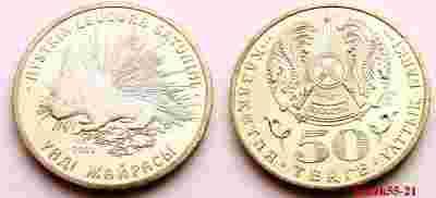 KAZACHSTAN 50 TENGE 2009 ZWIERZĘTA KOLCZATKA UNC