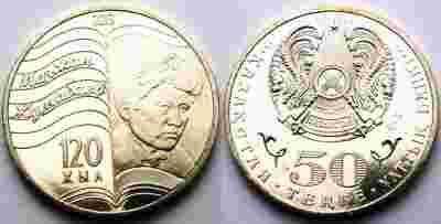 KAZACHSTAN 50 TENGE 2013 MAGJAN ZHUMBAJEM MENNICZA