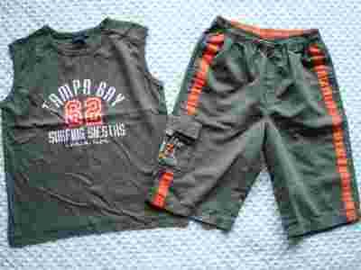 Khaki spodenki z bluzką r.140 9lat:))