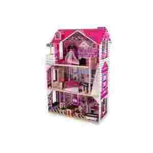 Wysokiej jakości domek dla lalek, pochodzący ze Stanów Zjednoczonych. Wykonanie z litego drewna, precyzyjne malowanie i grafika (NIE naklejka!), solidna konstrukcja i piekne wyposażenie, ciekawa stylizacja utrzymana w tonie różowym. Wysokość ok. 120 cm. Domek posiada 3 kondygnacje, balkon, schody, windę, 14 kolorowych mebli i wiszący żyrandol. Szerokie okna umożliwiają oglądanie wnętrza domku z każdej strony. Przeznaczone dla lalek do wys. 30 cm. Instrukcja w języku polskim.