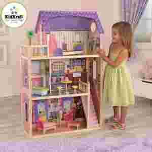 Wysokiej jakości domek dla lalek, pochodzący ze Stanów Zjednoczonych. Wykonanie z drewnianych materiałów kompozytowych oraz elementów z tworzyw sztucznych (schody,wanna) i tkanin (pościel). Precyzyjne malowanie i grafika (NIE naklejka!), solidna konstrukcja i piekne wyposażenie, stylowy i łatwy w użytkowaniu. Idealny dla młodszych dzieci. Domek posiada 3 kondygnacje, balkon, schody i 10 kolorowych mebli. Szerokie okna umożliwiają oglądanie wnętrza domku z każdej strony. Przeznaczone dla lalek do wys. 30 cm. Zawiera instrukcję.