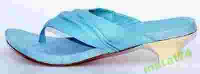 Luksusowe, oryginalne, anatomiczne klapki, japonki, sandały ze znanego amerykańskiego studia projektującego buty KIMEL DESIGN STUDIO. Paski klapek oryginalnie plisowane, wykonane z najwyższej jakości naturalnej skóry cielęcej w kolorze pudrowo-błękitnym. Wkładka wykończona wysokogatunkową naturalną irchą i skórą. Podeszwy wykonane ze skóry naturalnej, wkładka anatomicznie wyprofilowana. Obcas pokryty skórą naturalną.