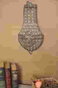 Piękny i niespotykany kinkiet z kryształkami w stylu empire, zdobiony aplikacjami z ciężkiego, patynowanego (postarzanego) metalu.